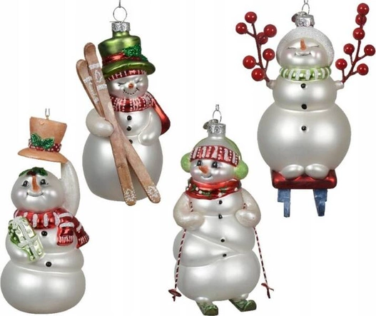 - Bombka szklana Bałwan 13cm 4 wzory 1 sztuka