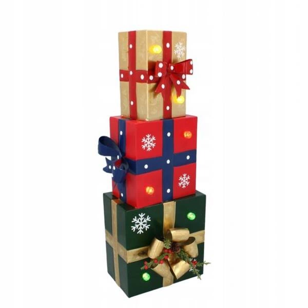 Prezenty pod choinkę metal LED kokardą 17x15x47cm