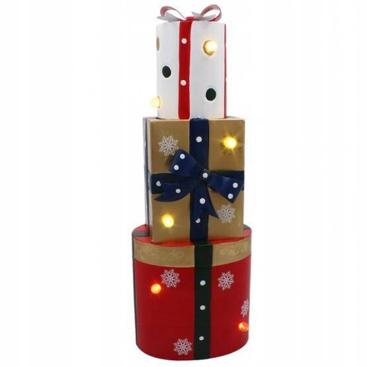 Prezenty pod choinkę metal LED kokardą komplet 3 sztuk 18x13x50cm