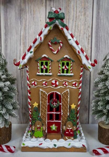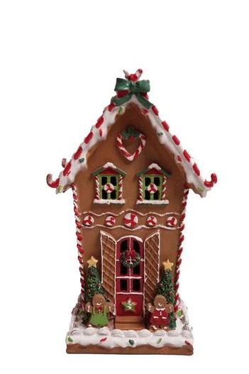 Domek LED piernikowy brąz, lukrowana czerwień 31x18x14 cm