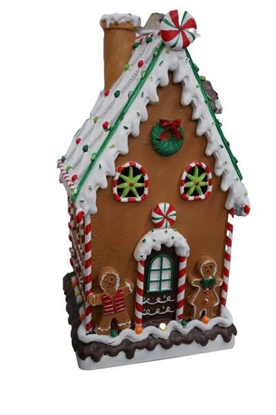 - Domek LED z piernika brąz ciastek, biały dach 51x28x28 cm