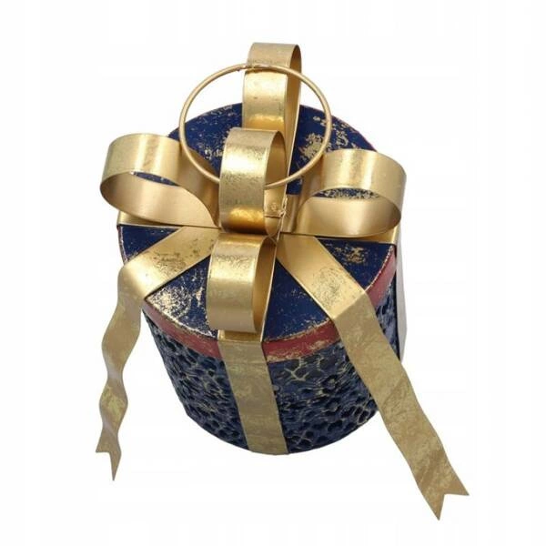 - Prezent pod choinkę metalowy LED okrągły granat złota kokarda 15x20cm