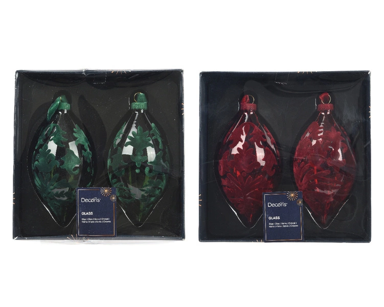 Bombki szklane 3szt 13cm łezka transparentna bordo/zielone 2kolory