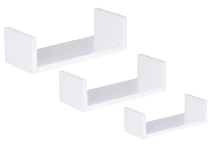 Zestaw 3 półek modułowych Velano typ-U FUS 1 biały to doskonałe rozwiązanie do nowoczesnych i klasycznych wnętrz. Każda półka w zestawie ma inny rozmiar, co pozwala na kreatywną i indywidualną aranżację ściany. Wykonane z lakierowanego MDF półki są trwałe, odporne na uszkodzenia i łatwe w czyszczeniu. Elegancki biały kolor podkreśla świeżość i harmonię pomieszczenia, a geometryczny kształt litery "U" nadaje całości wyjątkowy charakter. Zestaw idealnie sprawdzi się jako miejsce na dekoracje, książki czy drobne przedmioty codziennego użytku.