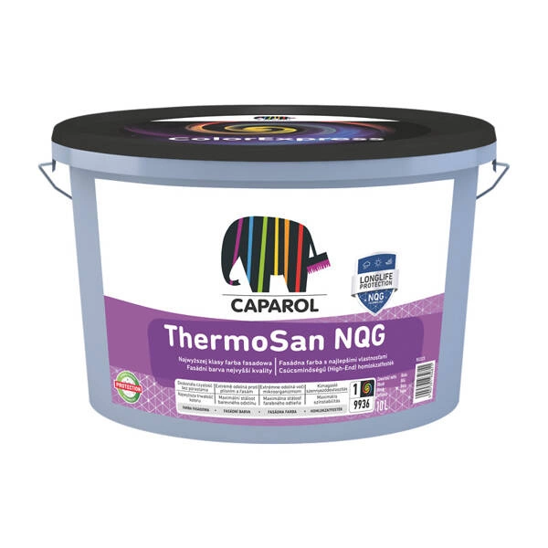 Charakteryzuje się optymalnie dobranymi do wymagań stawianych systemom ociepleniowym właściwościami, takimi jak: wysoka odporność na opady atmosferyczne i wysoka przepuszczalność pary wodnej. Farba ThermoSan NQG zalecana jest do stosowania w systemach ociepleń ETICS na tynkach: cementowo-wapiennych, akrylowych, silikonowych.