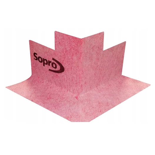 Uformowany z taśmy uszczelniającej AEB narożnik do niezawodnego, elastycznego i wodoszczelnego mostkowania szczelin dylatacyjnych i złączeniowych w narożach zewnętrznych. Stosuje się razem z taśmą Sopro AEB 641.