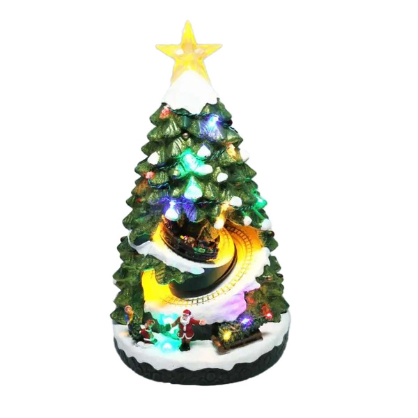 - Choinka zielona LED ze scenką, pociąg w tunelu 38 cm