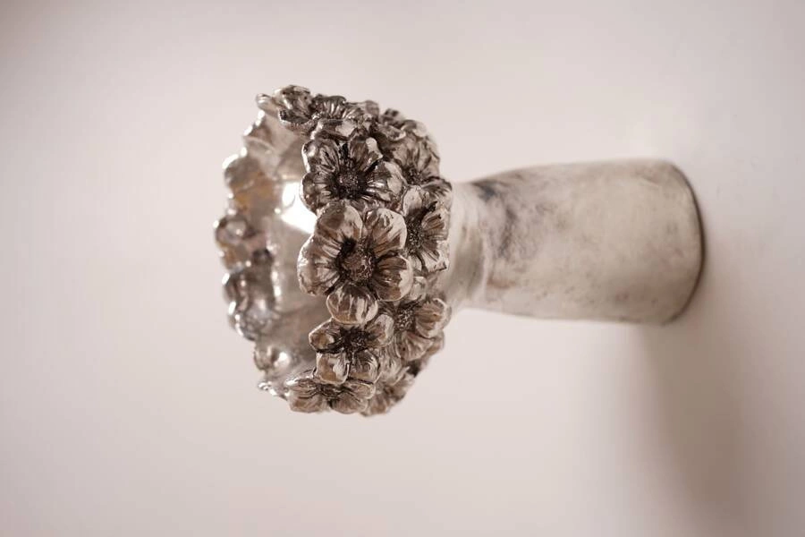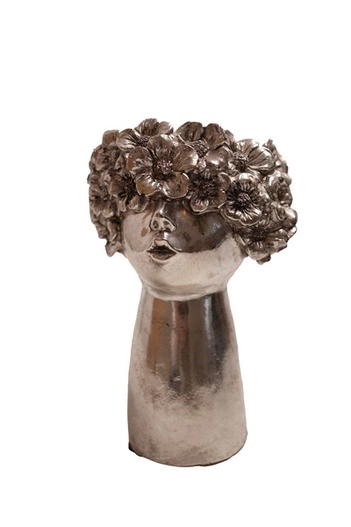 Wyjątkowej urody ceramiczna osłonka, przygotowana w kształcie głowy w srebrnym kolorze. Idealna ozdoba każdego wnętrza, podkreślająca jego charakter i klimat.