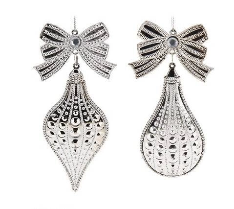 Zawieszka w srebrna z kokardą w 2 wzorach. Prezentuje się bardzo ładnie, stając się atrakcyjną dekoracją bożonarodzeniowego drzewka. Może być również eksponowana w dowolnym, innym miejscu domu - zarówno samodzielnie, jak i jako część większej kompozycji dekoracyjnej.