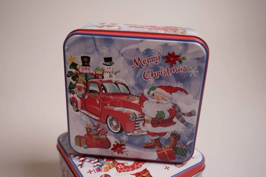 - Pudełko metalowe z Mikołajem 20x20 cm 2 wzory