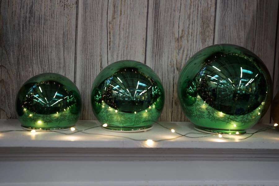 Kula LED w kolorze zielonym, zasilana 3 bateriami AA (brak w zestawie).
