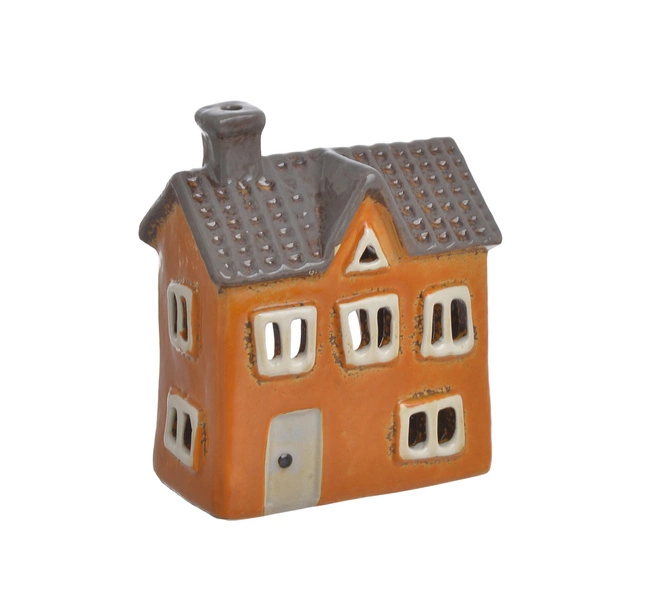 - Domek Holenderski na T-light pomarańczowy, szary dach 12,5 cm