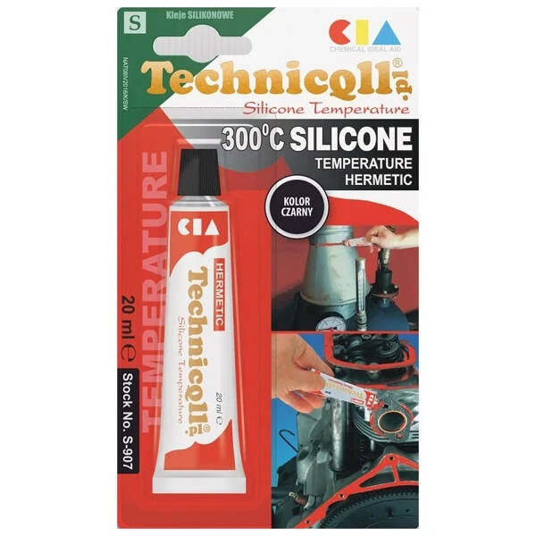 Wysokiej jakości jednokomponentowy silikon wysokotemperaturowy w kolorze czarny. Utwardza się pod wpływem wilgoci tworząc elastyczną uszczelkę odporną na czynniki atmosferyczne i płyny eksploatacyjne. Inaczej nazywany płynna uszczelka. Stosowany głównie w motoryzacji do uszczelniania podzespołów silników.