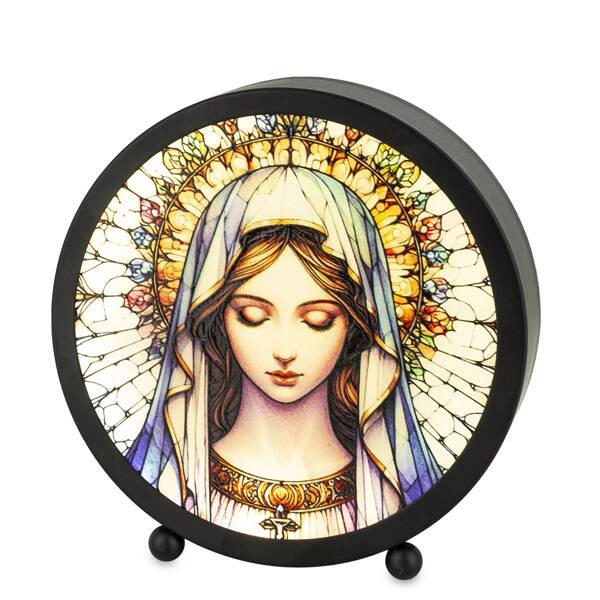 - Lampion witrażowy LED z Matką Boską 15,5x15,5cm