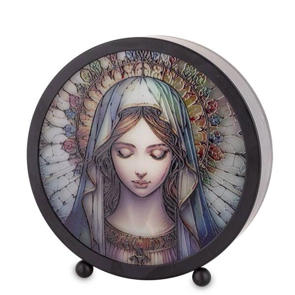 Lampion witrażowy LED z Matką Boską 15,5x15,5cm