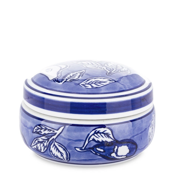 Pojemnik ceramiczny biało-niebieski płaski listki 14cm