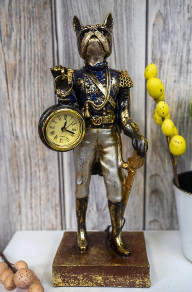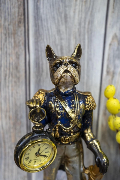 Figurka Antyk PIES ze złotym zegarem nakrapiany złotem 32,5 cm