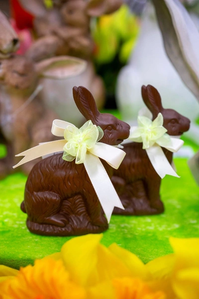 Dekoracja, która pozwoli na aranżację wnętrza w okresie świąt Wielkanocy. Bardzo starannie wykonana, przedstawia królika, przypominającego czekoladową figurkę. Nadaje wyjątkowego charakteru każdej przestrzeni domowej.