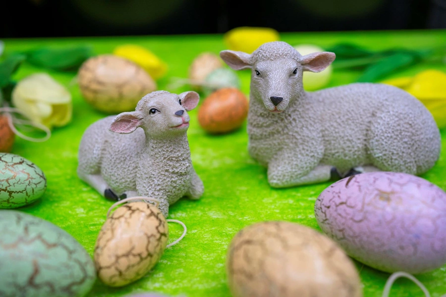 Dekoracja przygotowana w formie pięknej figurki owieczki. Pozwoli na aranżację domowej przestrzeni w okresie świąt Wielkanocy, ale swój ozdobny charakter zachowuje również poza sezonem.