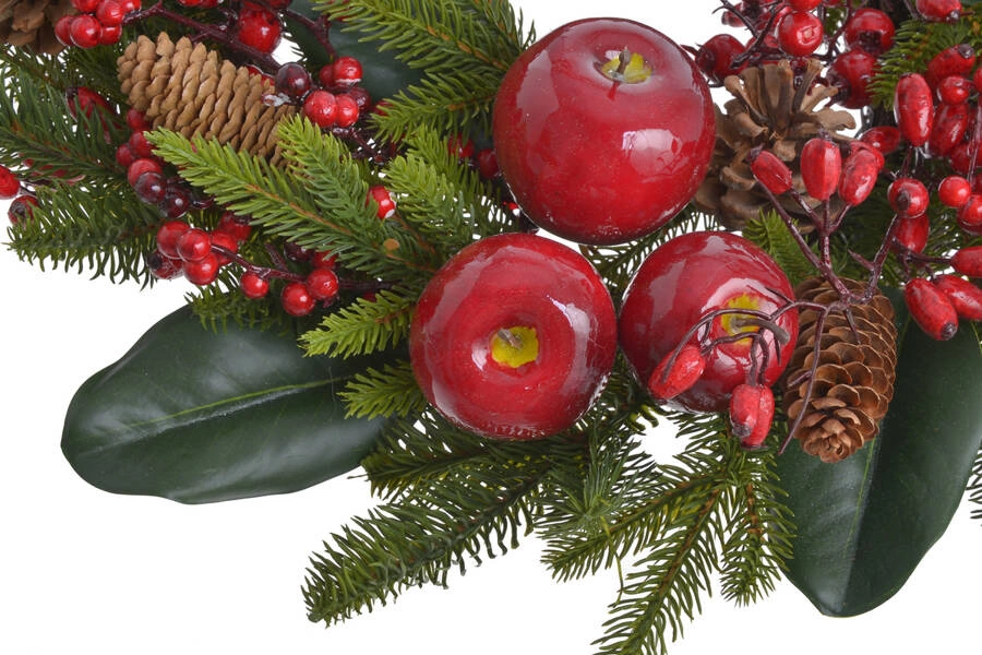 Wianek świerkowy czerwone jabłka/szyszki/małe kulki 50 cm