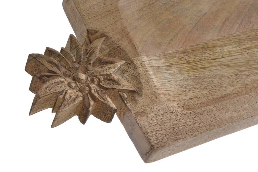 Podstawka drewniana Mango uchwyt kwiat 15x30cm to pełna wdzięku dekoracja, która zachwyca naturalnym wyglądem i subtelną elegancją. Starannie wyprofilowany uchwyt w kształcie kwiatowego motywu przyciąga wzrok, tworząc przytulny klimat w każdym pomieszczeniu. Delikatna struktura drewna mango nadaje całości lekkości i harmonii, a unikatowa forma sprawia, że podstawka świetnie odnajdzie się zarówno w rustykalnych, jak i nowoczesnych aranżacjach. Idealna na świąteczny stół, do codziennych rytuałów czy jako ozdoba na prezent.