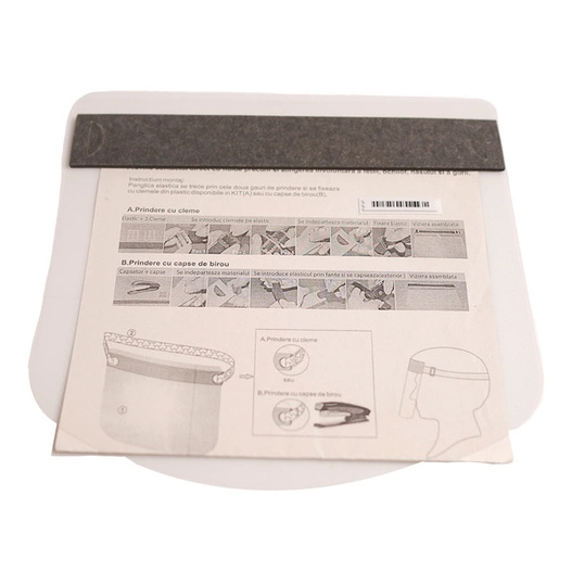 Osłona twarzy przeciwodpryskowa zakładana na czoło za pomocą tasiemki. Wykonana została w przezroczystym kolorze i chroni przed drobnymi odpryskami i drobinkami.