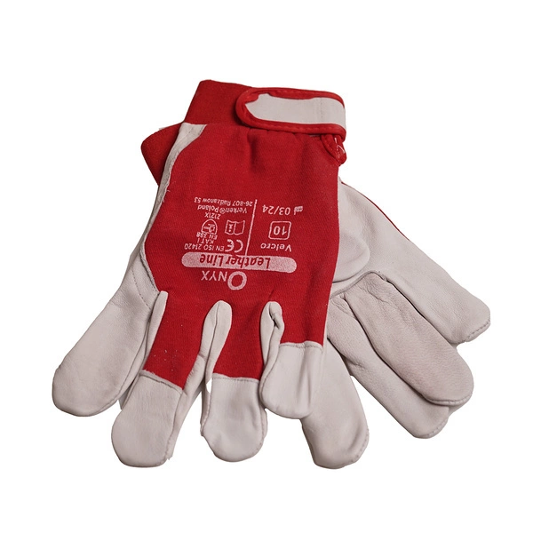 - Rękawice ochronne skórzane czerwone z rzepem