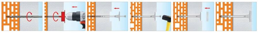 Kołki montażowe do styropianu o długości 20 cm przeznaczone do mocowania izolacji termicznej w różnych podłożach, zgodnie z normą ETAG 014. W zestawie znajduje się frez tworzywowy do wykonywania otworów oraz zaślepki, które poprawiają estetykę i skuteczność izolacji.