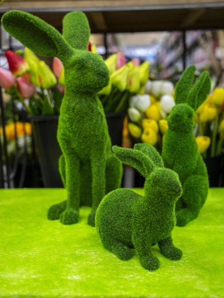 Dekoracja, która pozwoli na aranżację wnętrza w okresie świąt Wielkanocy. Bardzo starannie wykonana, przedstawia królika z mchu w zielonym kolorze. Nadaje wyjątkowego charakteru każdej przestrzeni domowej. Pięknie będą prezentować się w koszyku wielkanocnym.