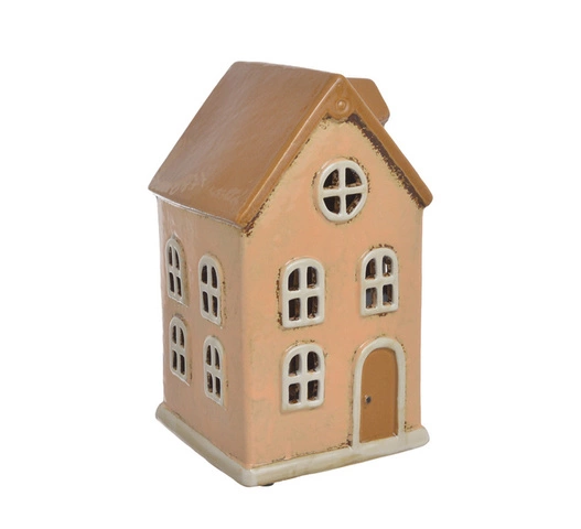 Domek Holenderski na T-light beż, brązowy dach lampion świecznik 23 cm