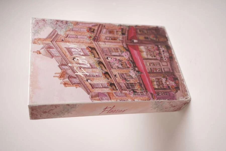 Pudełko w kształcie książki to doskonałe rozwiązanie do przechowywania delikatnych przedmiotów, takich jak biżuteria. Okładka pudełka zdobiona jest pięknym nadrukiem kamienicy, które dodają elegancji i oryginalności. Kolorystyka różowa. Wykonane z imitacji skóry, MDF i wykończone w środku filcem.