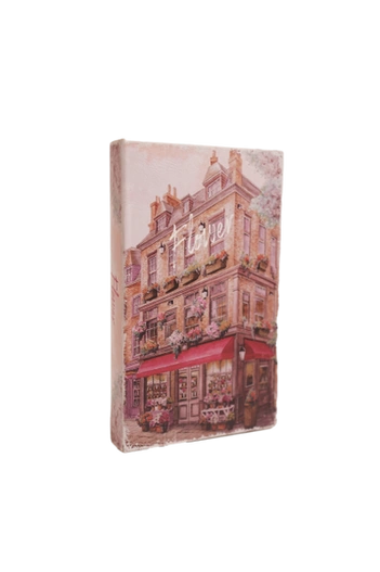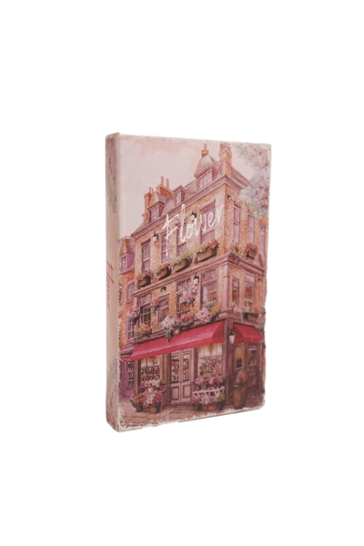 Pudełko w kształcie książki to doskonałe rozwiązanie do przechowywania delikatnych przedmiotów, takich jak biżuteria. Okładka pudełka zdobiona jest pięknym nadrukiem kamienicy, które dodają elegancji i oryginalności. Kolorystyka różowa. Wykonane z imitacji skóry, MDF i wykończone w środku filcem.