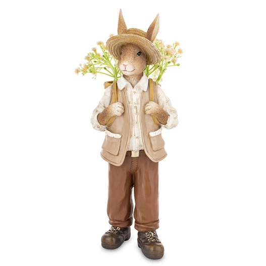 Figurka Królik ON brąz spodnie koszyk kwiatów na plecach 30cm