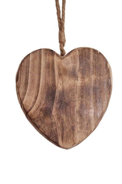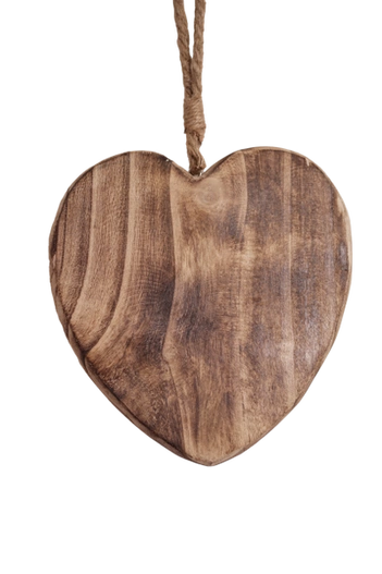 Zawieszka drewniana uformowana w kształt serca. Umocowana na jutowym sznurku. Jest pięknym elementem dekoracyjnym każdego wnętrza.