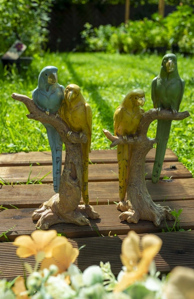 - Papugi na konarze 2szt żółto-zielona/turkus-złota 7,5x24x11,5 cm