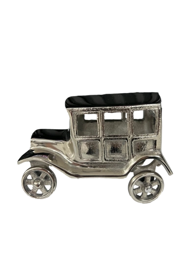 Stylowa figurka przedstawiająca srebrny metalowy samochód. Wykonany z dbałością o każdy szczegół. Jest bardzo charakterystycznym elementem ozdobnym, który sprawdzi się we wnętrzu o każdym charakterze. Wprowadza do pomieszczenia wyjątkowy, bardzo atrakcyjny nastrój.