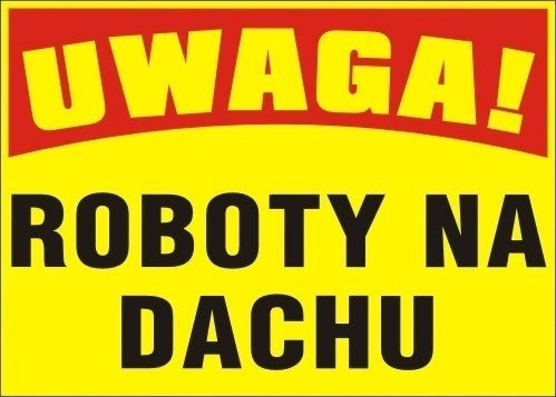 - Napis ROBOTY NA DACHU → precyzyjne ostrzeżenie dla osób w otoczeniu