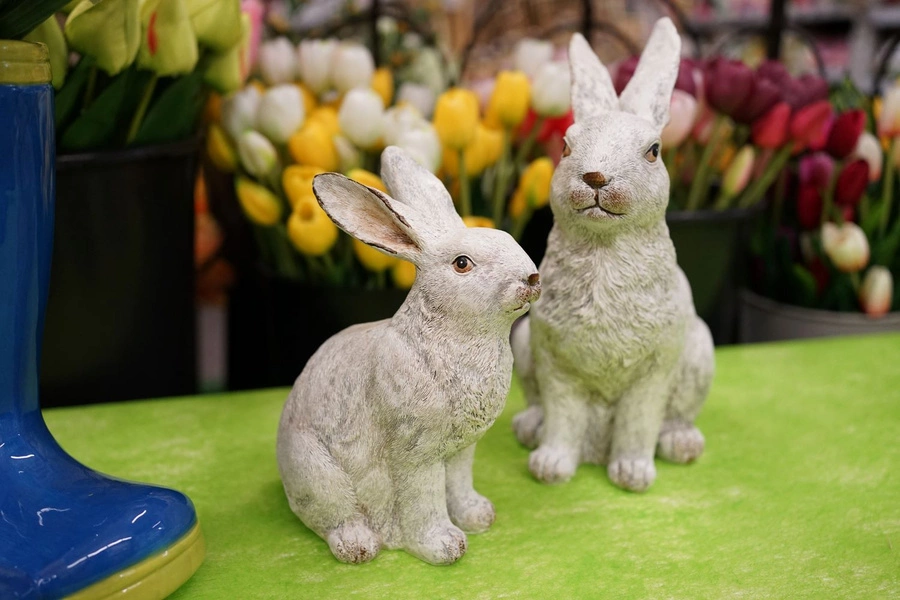 Zając siedzący biały szczotkowany 29 cm pięknie zaprezentuje się na wielkanocnym stole, w otoczeniu pastelowych serwetek, świeżych kwiatów i pisanek. Ustawiony na komodzie w salonie lub na parapecie doda lekkości codziennej aranżacji, tworząc przytulny kącik z innymi ozdobami świątecznymi.