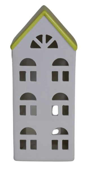 - Domek T-light ceramiczny biały z żółtym dachem lampion świecznik 21cm