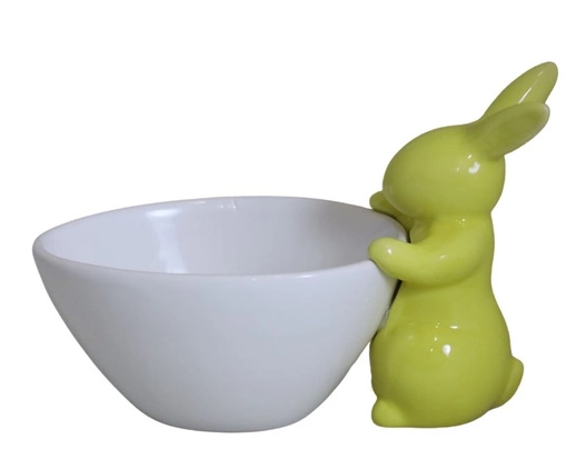 Atrakcyjny miseczka, przygotowana została niezwykle starannie. Wykonana w klasycznym białym kolorze, z akcentem w postaci żółtego króliczka trzymającego się krawędzi miseczki. Idealnie wkomponuje się w klimat Wielkanocy.