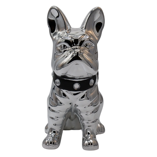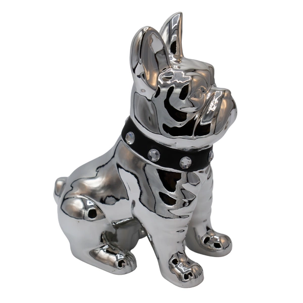 Skarbonka buldog srebrny z czarną obrożą i cekinami