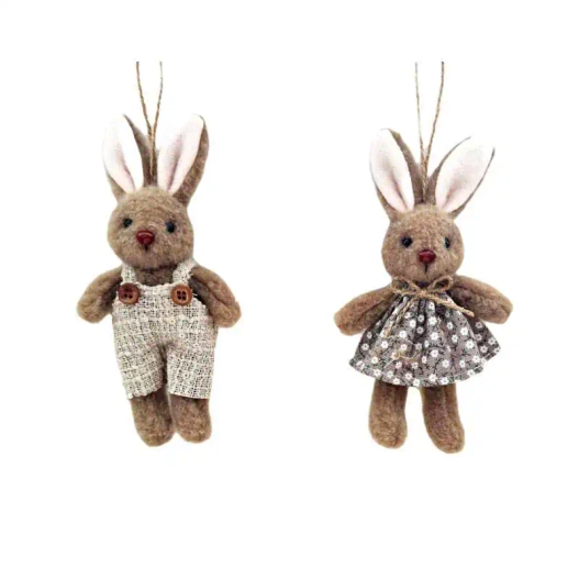 Zawieszka Zając brąz ON/ONA szare spodnie/sukienka 16cm