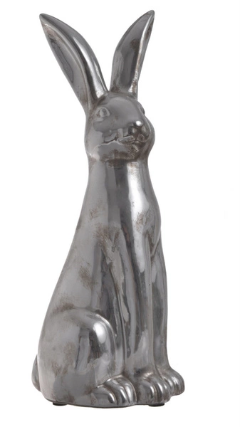 - Zając ceramiczny siedzący srebrny mat 51cm