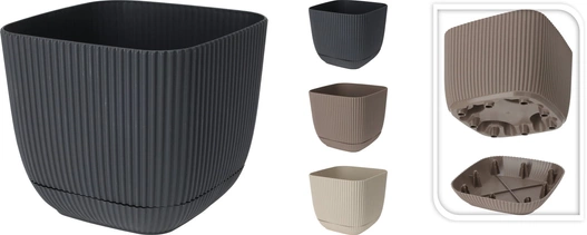 - Doniczka PVC kwadratowa z podstawką 20x20 plis czarny/brązowy/beżowy