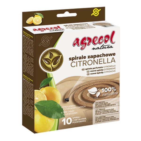 Klasyczne spirale na komary i inne owady latające, które doskonale sprawdzą się na tarasie, balkonie czy w przestrzeni ogrodowej. Spirale o przyjemnym, cytrynowym aromacie, tworzą aurę zapachową nieatrakcyjną dla komarów, zapewniając tym samym większy komfort i możliwość cieszenia się relaksem.