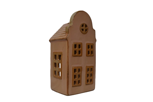 Domek na T-light ceramiczny brązowo-beżowe okna lampion świecznik 15,5cm