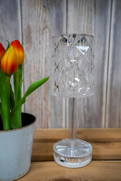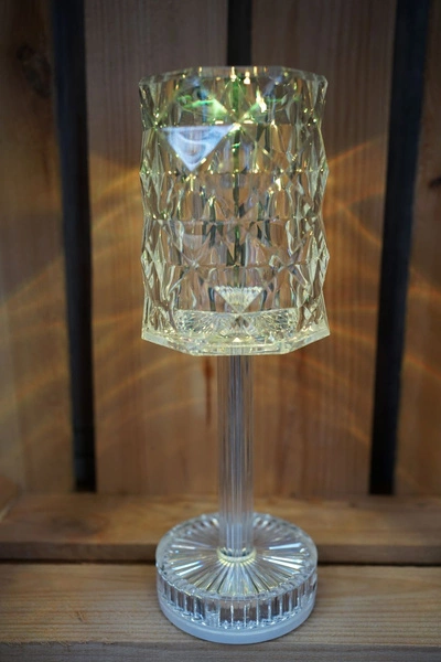 Lampka plastikowa z baterią USB 26cm kryształ kielich doskonale sprawdzi się jako oświetlenie dekoracyjne do salonu, sypialni, na taras, balkon czy do ogrodu. Idealna na romantyczne kolacje, spotkania z przyjaciółmi, a także jako praktyczne źródło światła podczas czytania lub relaksu.
