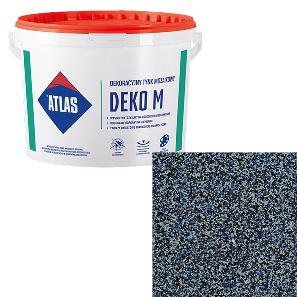 Deko M jest specjalnie przygotowaną linią tynków mozaikowych, opartych na nowoczesnej bazie składającej się z mieszanki wodnych dyspersji akrylowych, środków hydrofobizujących, dodatków modyfikujących oraz specjalnie wyselekcjonowanych kruszyw naturalnych i barwionych.