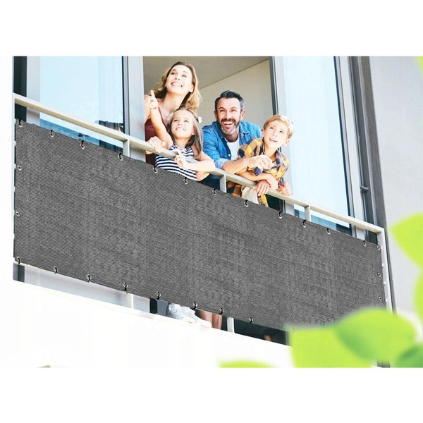 Osłona balkonowa Szara 0,9x6m idealnie sprawdzi się w mieszkaniach w blokach, na balkonach, tarasach oraz w altankach ogrodowych. Stanowi skuteczną barierę przed wiatrem, słońcem i wzrokiem sąsiadów, zapewniając komfortowe warunki do wypoczynku, pracy lub spotkań z bliskimi na świeżym powietrzu.