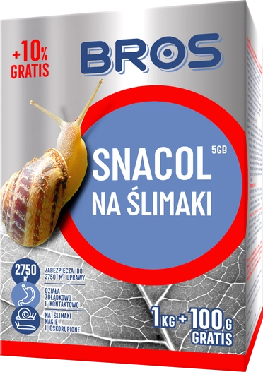 Granulat Snacol 1,1kg bros to nowoczesny preparat przeznaczony do zwalczania ślimaków w uprawach rolniczych oraz na rabatach z roślinami ozdobnymi. Dzięki specjalnej formule o działaniu żołądkowym i kontaktowym środek skutecznie likwiduje ślimaki, chroniąc Twoje rośliny przed uszkodzeniami. Zawartość substancji nęcących przyciąga szkodniki, a odporność na wilgoć sprawia, że produkt pozostaje aktywny nawet podczas niekorzystnych warunków pogodowych. Wybierając Snacol, zyskujesz pewność ochrony swoich upraw na długi czas.
